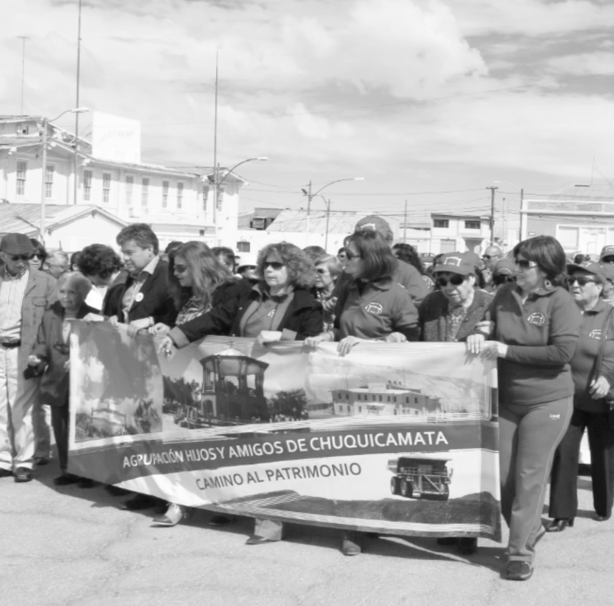 La Agrupación Hijos y Amigos de Chuquicamata nace oficialmente en el 19 de febrero de 2013, después de que ex habitantes del campamento minero, junto a instituciones locales y autoridades, lograran la unión necesaria y el empuje para comenzar una larga gestión que logró, primero formalizar la unión de vecinos en torno a la lucha por proteger patrimonialmente el campamento y luego lograr la Declaratoria que permite contar con instrumentos jurídicos y la participación institucional del Estado a través del Consejo de Monumentos Nacionales.